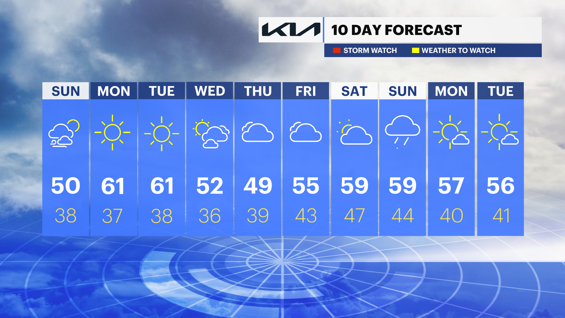 Monday and Tuesday will feel like April. Many neighborhoods will reach 60 degrees with mostly sunny skies and light wind.